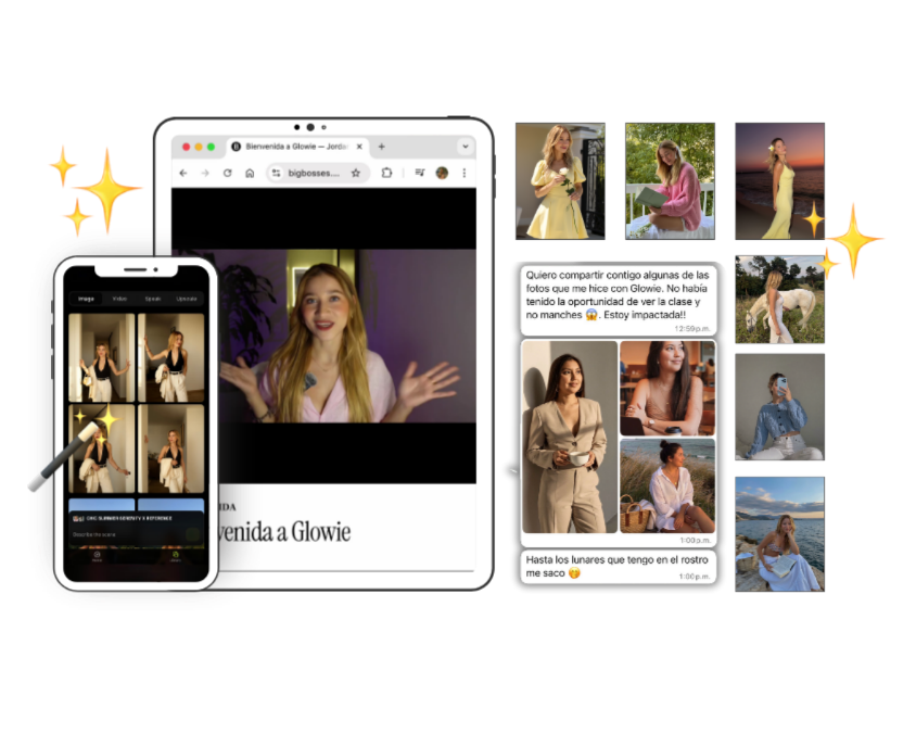Con Glowie aprenderás paso a paso cómo generar un banco de fotos tuyas listas para redes sociales, páginas web, productos digitales o cualquier proyecto de tu negocio. No importa si nunca has usado herramientas de IA.