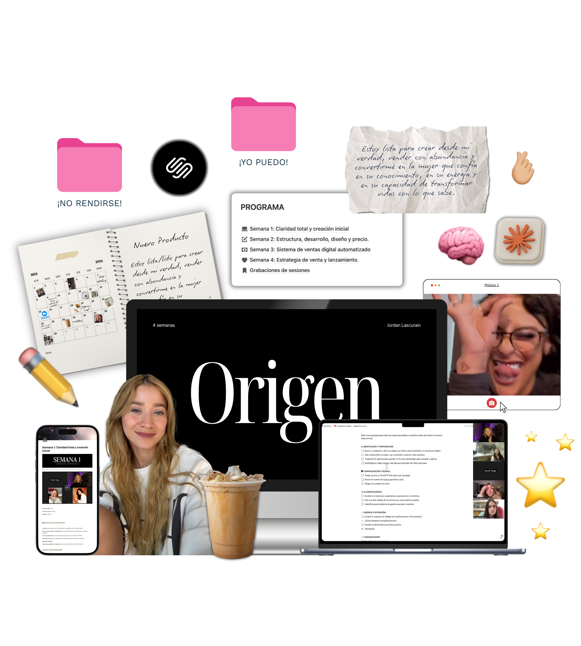 Además del contenido grabado y el portal en Notion, tendrás 2 sesiones en vivo grupales, pensadas para darte claridad, dirección y apoyo mientras construyes tu producto digital.